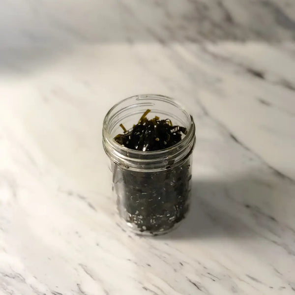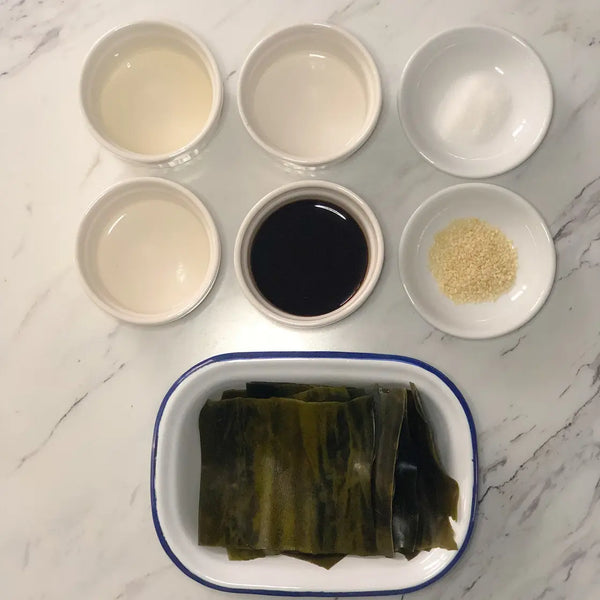 昆布佃煮,就像日本風味十足的秘密武器。一切都始於 海帶一種可食用的海帶,在日本烹飪中很重要。通常,我們使用製作海帶高湯後使用的海帶來製作海帶佃煮。這不就是日本獨有的Mottainai文化嗎?它們仍然很美味(為什麼不呢!),並且在用於肉湯後更容易吸收味道。接下來就是神奇的部分了——在由醬油、味醂(甜米酒)、糖、有時還加醋製成的醬汁中慢慢燉,使其變軟。