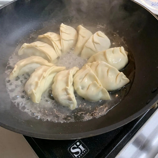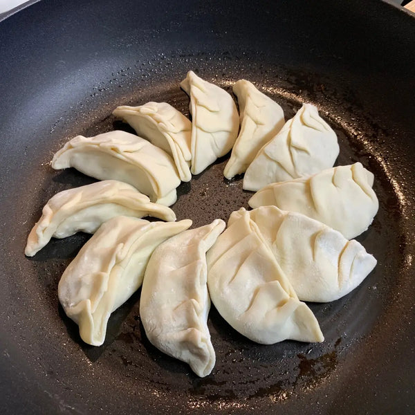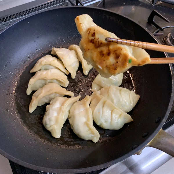 餃子起源於中國,在江戶時代(1603-1867)傳入日本。在中國,煮餃子是最常見的餃子吃法,而在日本,煎餃子(底部酥脆、頂部鮮嫩的煎餃)已成為最受歡迎的風格。烹飪偏好的差異來自於菜餚的食用方式:在中國,餃子通常是大批量準備並作為主菜享用,而在日本,餃子經常與米飯或拉麵一起作為配菜,與煎炸的口感更搭配。