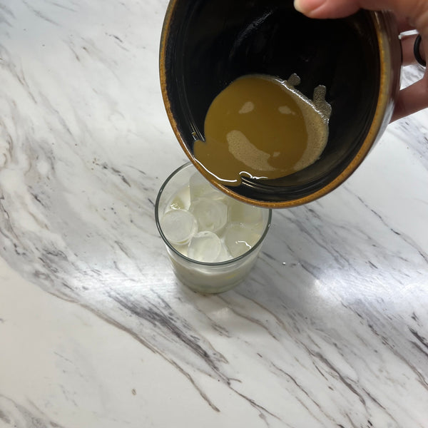 如果您使用散葉烘焙茶,請將其在熱水中浸泡約 30 至 60 秒,如此短的沖泡時間可以保留茶的天然甜味並防止苦味。然後只需將茶倒在冰上,加入牛奶和甜味劑,攪拌即可享用。