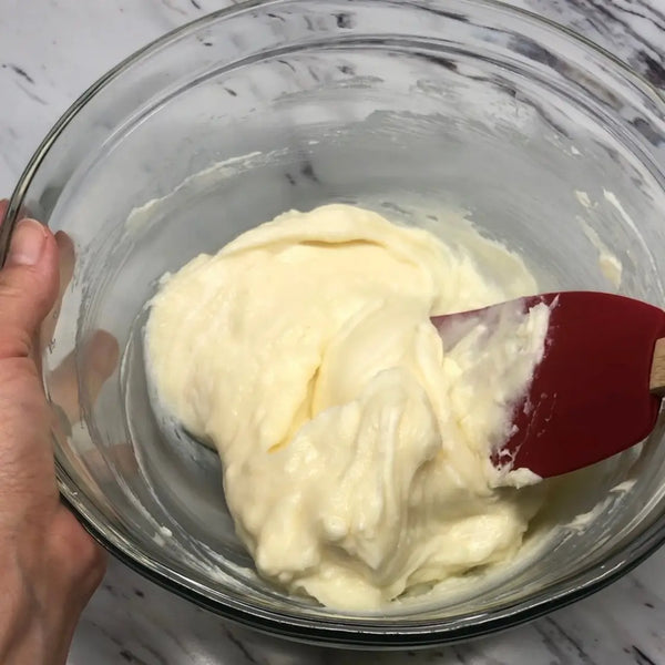 提示:對於這個蛋糕,我們希望盡量減少空氣進入麵糊,所以我們避免使用手動攪拌機。