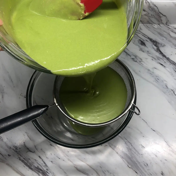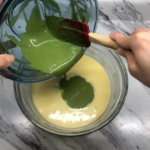6) 將抹茶起司蛋糕糊倒入鍋中