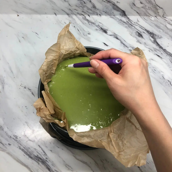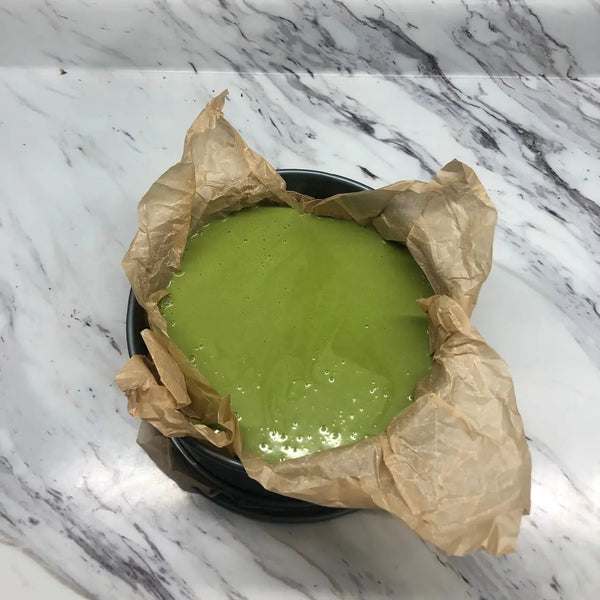 從烤箱中取出後,讓它冷卻以帶出味道。冷藏後飲用,可以發揮兩全其美的效果——清爽的抹茶味道和奶油起司蛋糕的質地。