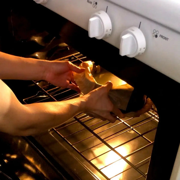 將平底鍋放入烤箱,烘烤 28 至 30 分鐘。 (避免超過35分鐘,因為這取決於烤箱。)