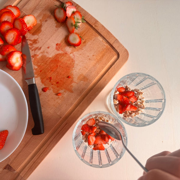 不要將凍糕與原味優格碗混淆,這是下一個層次。真正的草莓凍糕是精心設計的分層:甜、脆、奶油和多汁,全部集中在一勺中。