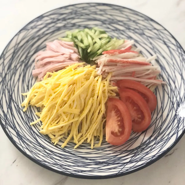 Hiyashi Chuka 是一道很棒的日本料理,非常適合炎熱的夏天。這是一碗冰鎮麵條,上面有五顏六色的配料,並配有濃鬱的調味料。想像一下,色彩繽紛的麵條沙拉就像在泳池裡暢泳一樣清爽。