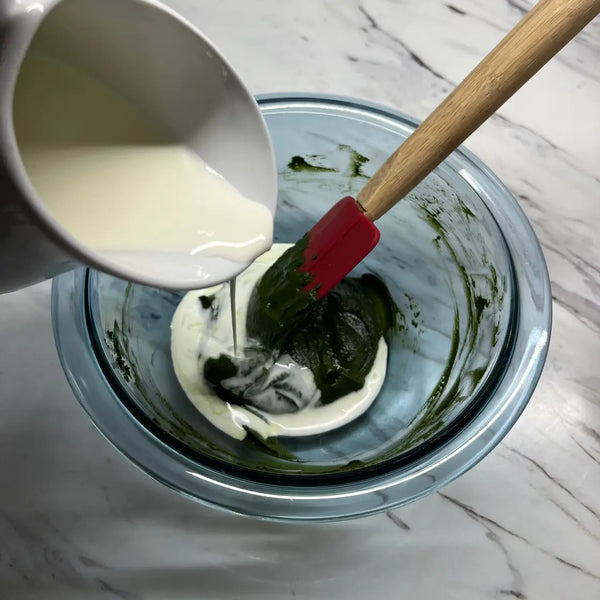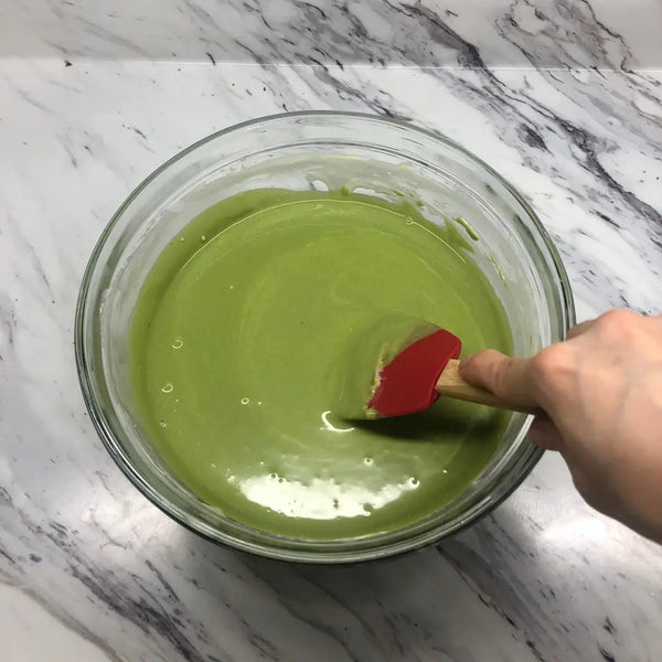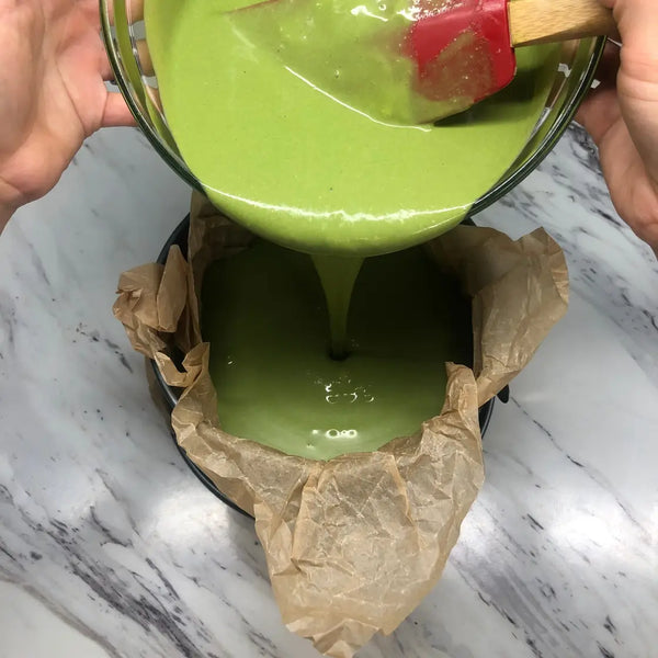 6) 將抹茶起司蛋糕糊倒入鍋中