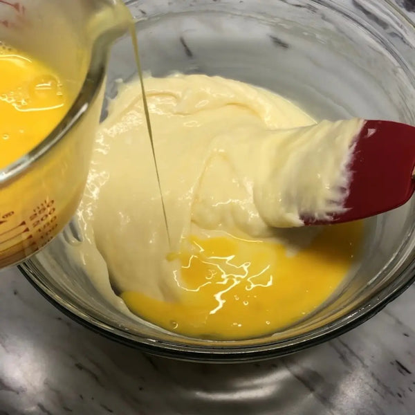提示:對於這個蛋糕,我們希望盡量減少空氣進入麵糊,所以我們避免使用手動攪拌機。