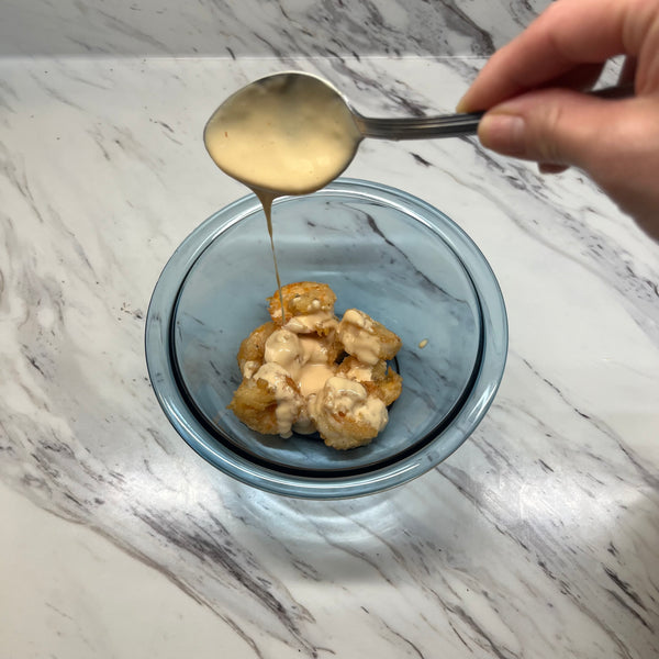 這道菜與其他油炸海鮮的真正區別在於其甘美的招牌醬汁。底料是用厚厚的日本蛋黃醬製成的,再加上一點醬油的鮮味和一點蜂蜜,提供溫和、平衡的甜味。這種醬汁的用途非常廣泛;您可以輕鬆地根據您的個人口味定制它,添加一點是拉差 (Sriracha) 來增加辛辣味,加入少許檸檬汁來增加鮮味,甚至添加一點磨碎的大蒜來增加芳香深度。