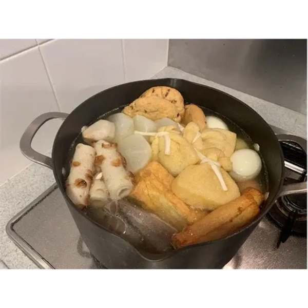 關東煮是日本冬季流行的家常菜。這是一種燉菜,含有蔬菜和 nerimono(魚或肉,經過研磨、調味並揉成蛋糕)。將這些成分混合並在美味的大石湯中慢燉。