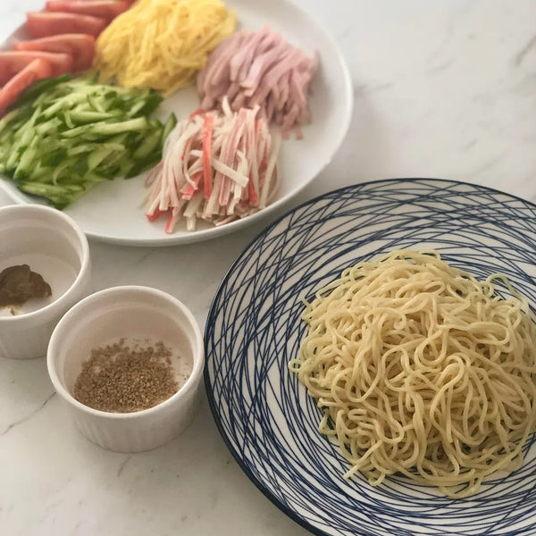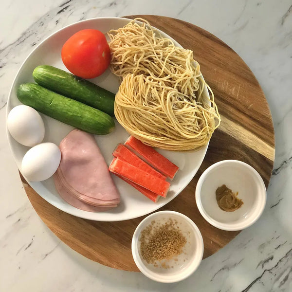 Hiyashi Chuka 是一道很棒的日本料理,非常適合炎熱的夏天。這是一碗冰鎮麵條,上面有五顏六色的配料,並配有濃鬱的調味料。想像一下,色彩繽紛的麵條沙拉就像在泳池裡暢泳一樣清爽。