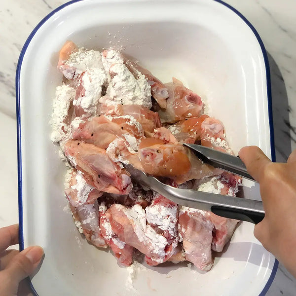 現在,讓我們來探討一下Tebasaki是如何製作的。當然,首先是雞翅,雞翅分為雞翅和雞翅,以確保均勻烹飪。用鹽和胡椒簡單調味後,雞翅上塗上麵粉和澱粉(馬鈴薯或玉米澱粉)的混合物,創造出必要的酥脆感。然後將它們油炸至金黃色且鬆脆。關鍵技術是平衡質地——保持肉的內部多汁嫩滑,同時賦予外部令人上癮的酥脆口感。 (別擔心,我們還將在本文中為那些不喜歡油炸的人介紹替代的、較清淡的 Tebasaki 食譜!)
