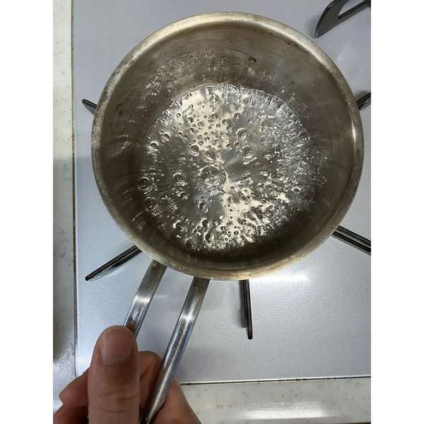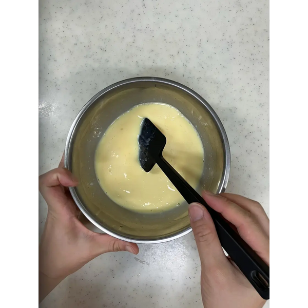 提示:重要的是不要使用抹刀攪拌原料。只需將鍋子從一側轉到另一側即可攪拌。