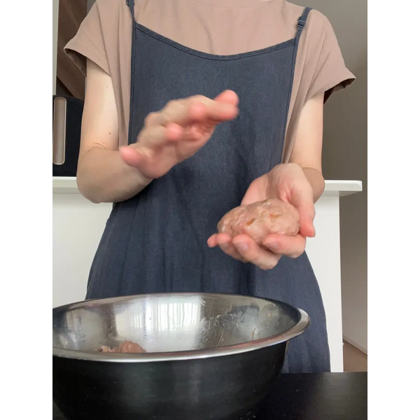 - 最後一個技巧是將每個hambāgu肉餅從右手直接扔到左手,以釋放肉餅中的空氣。這將有助於hambāgu在烹飪時保持其形狀。
