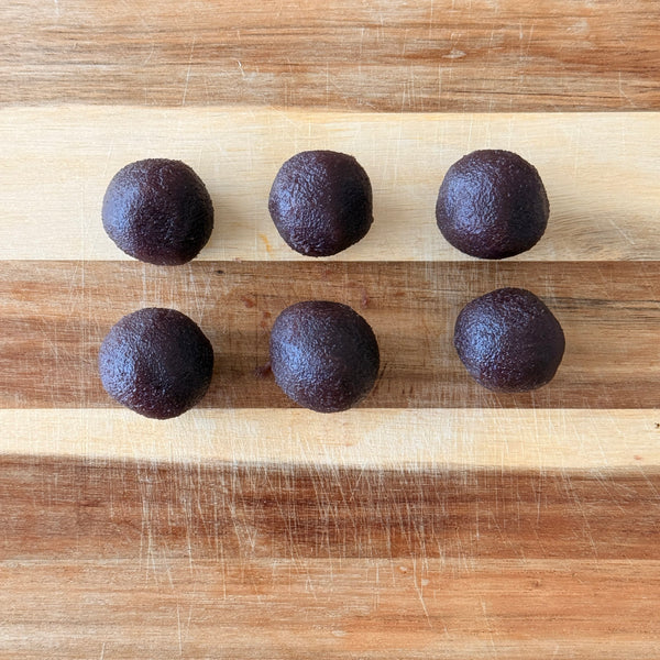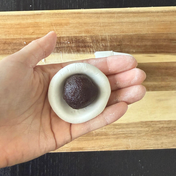 1. 減少紅豆沙的水分。 確保糊劑足夠堅固,可以成型而不會粘連。如果太濕,請用微波爐短暫加熱或將其放在紙巾上以去除多餘的水分。