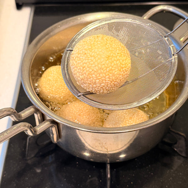 2.保持正確的油炸溫度。 從140℃左右開始,然後慢慢升溫至170℃,使外層酥脆而不裂開。一旦掌握了基礎知識,就可以嘗試其他餡料,如厚實的紅豆、黑芝麻、南瓜、地瓜、抹茶、蛋奶凍或巧克力。