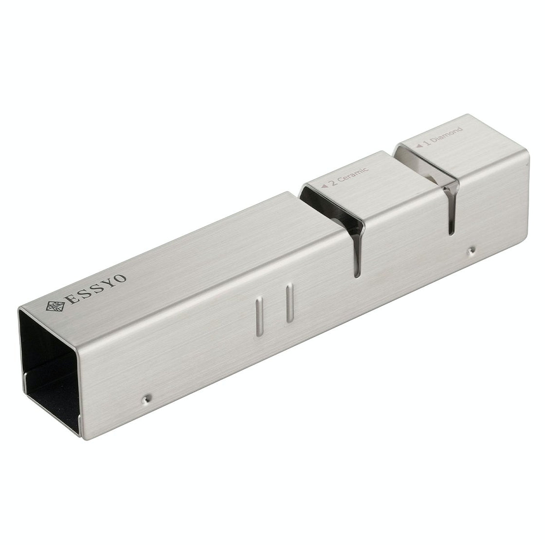 只需將刀穿過拉槽即可確保鋒利的刀刃。 將其穿過鑽石磨刀石進行粗磨,然後用陶瓷磨刀石進行精細打磨。